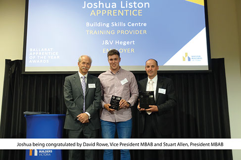 • Mitchell Gervasoni, Master Builders Chairman's Apprentice of the Year Ballarat Section.