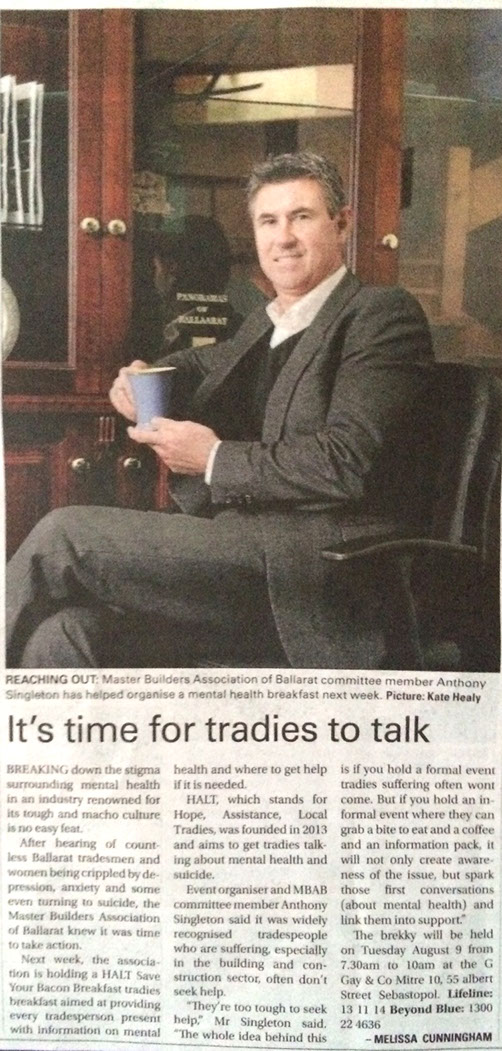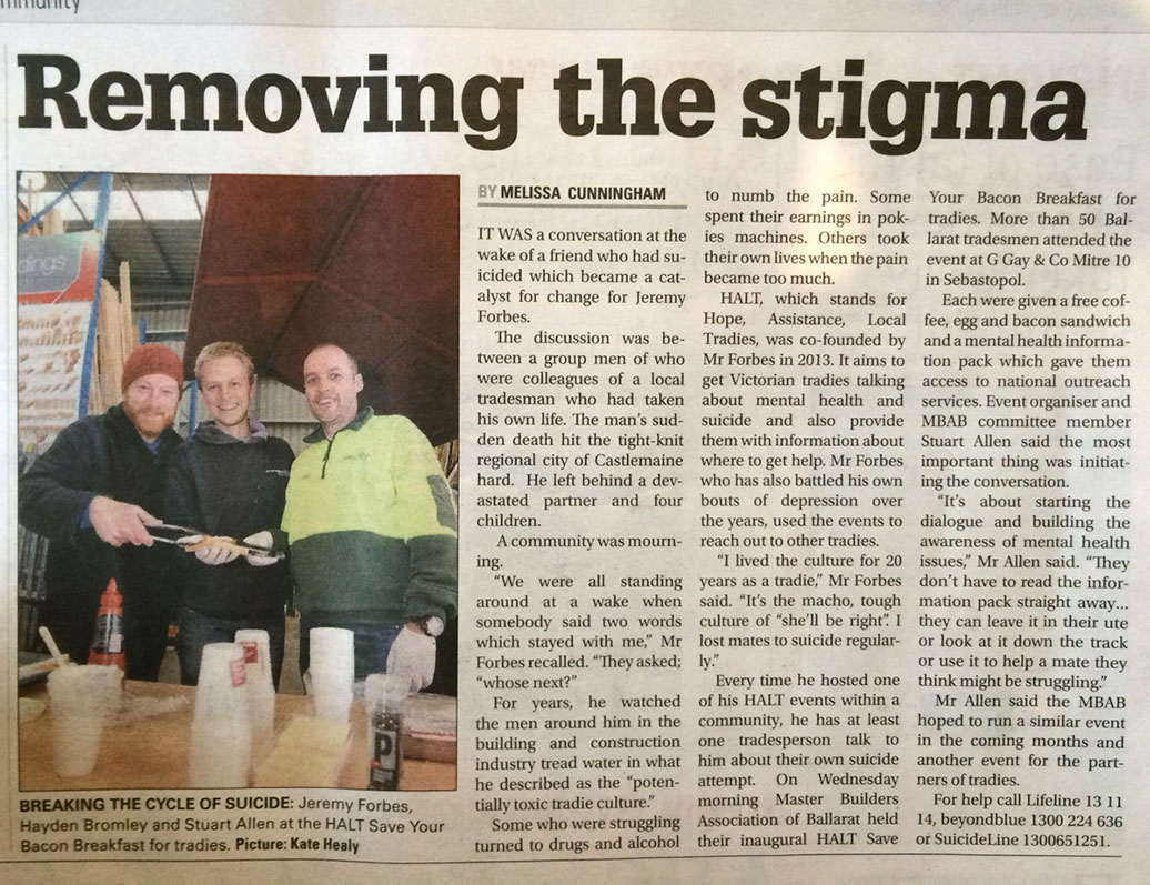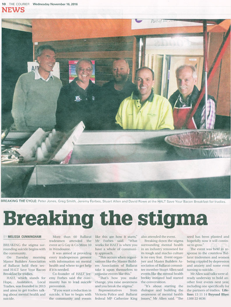 Our second mental health awareness breakfast was held, HALT Save your Bacon Breakfast for Tradies.